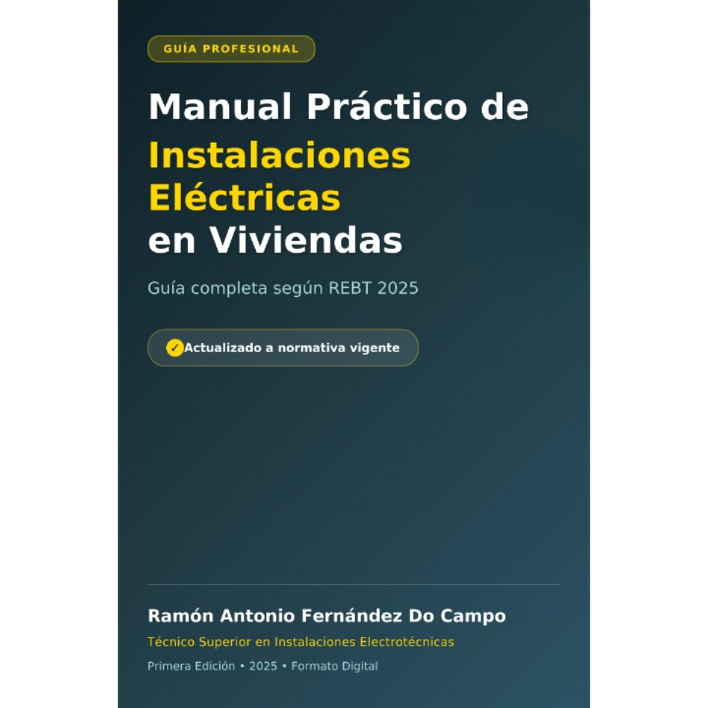 📦 Qué incluye este manual Guía práctica completa de instalaciones eléctricas en viviendas, basada en el REBT 2025. Más de 180 fotos y diagramas que ilustran cada paso de forma clara. Explicación sencilla de códigos de colores de cables, circuitos obligatorios y puesta a tierra. Consejos sobre herramientas y materiales esenciales para trabajar con seguridad. Redacción bilingüe (español e inglés) para llegar tanto a locales como a expatriados. Conocimiento probado en campo, sin jerga innecesaria: ejemplos reales y aplicables.